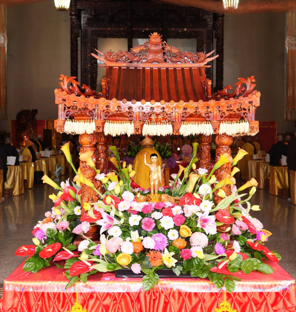 釋迦牟尼佛聖誕,本寺於毘盧寶殿前廊與廣場懸掛象徵光明智慧、喜氣祥瑞的蓮花燈。