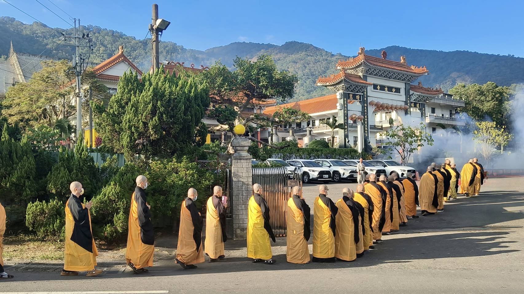恭送三位主法和尚回寮。