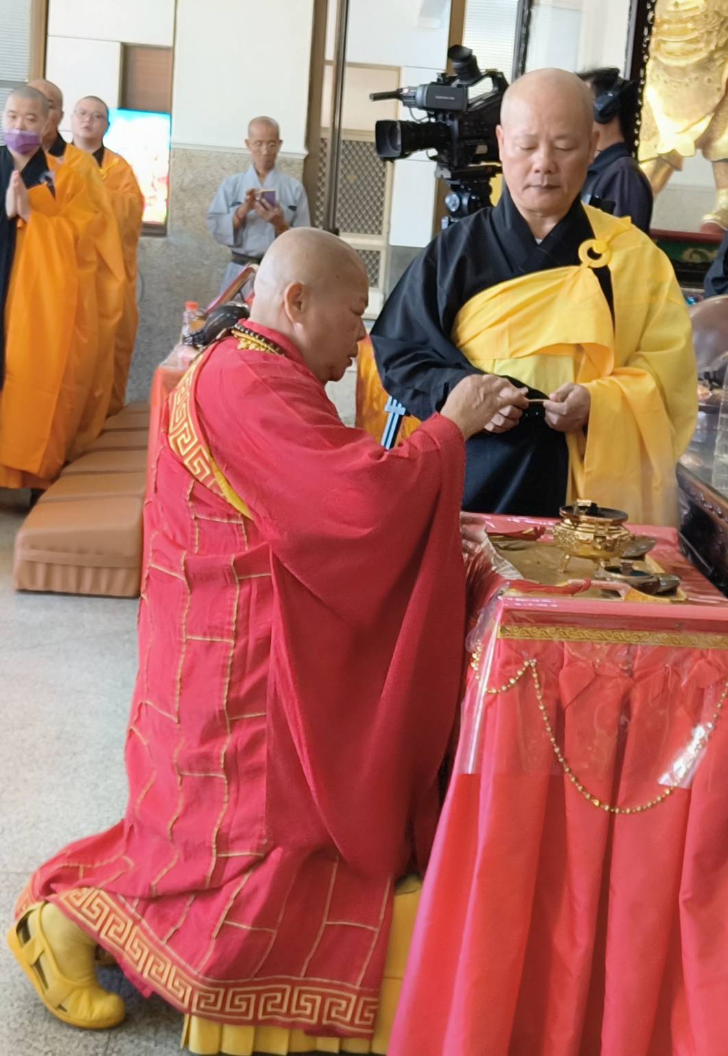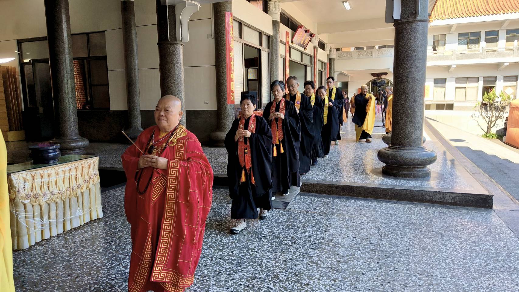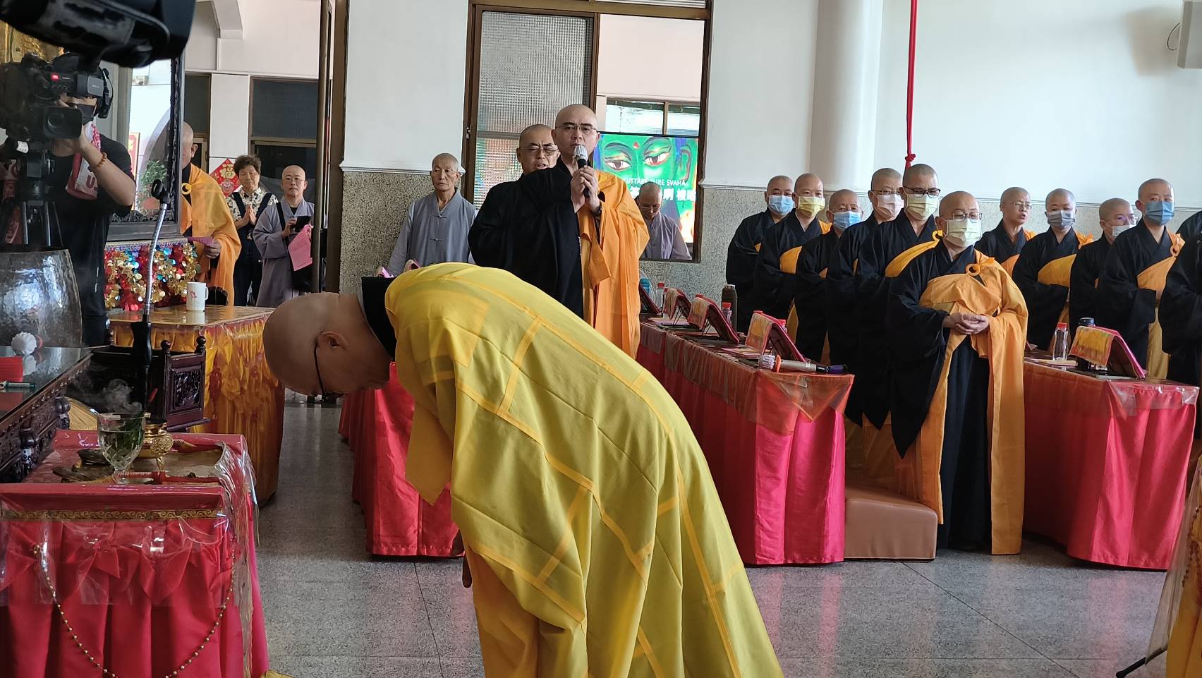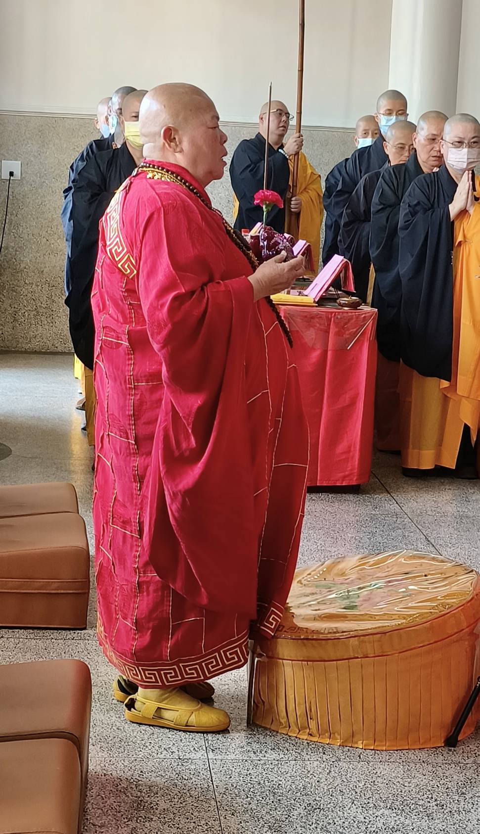 香燈引領齋主到法堂恭請主法和尚。