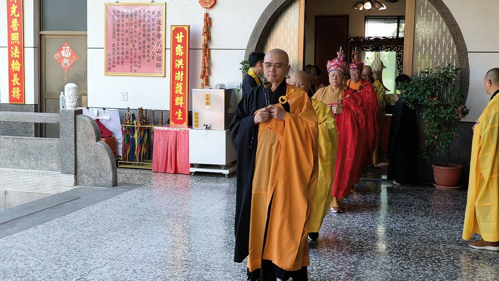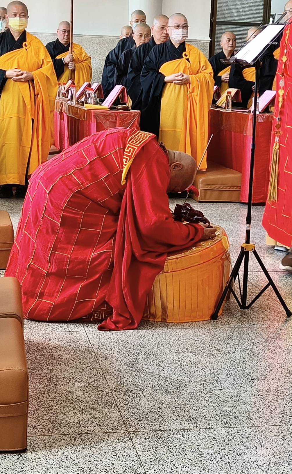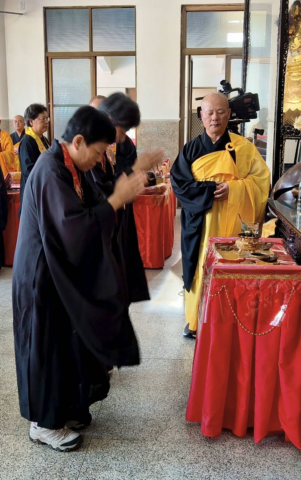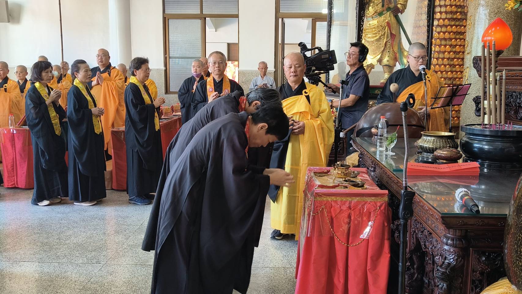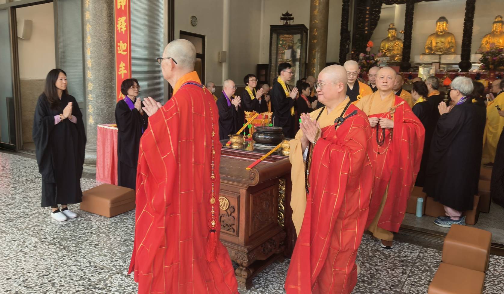 香燈引領齋主到法堂恭請主法和尚。