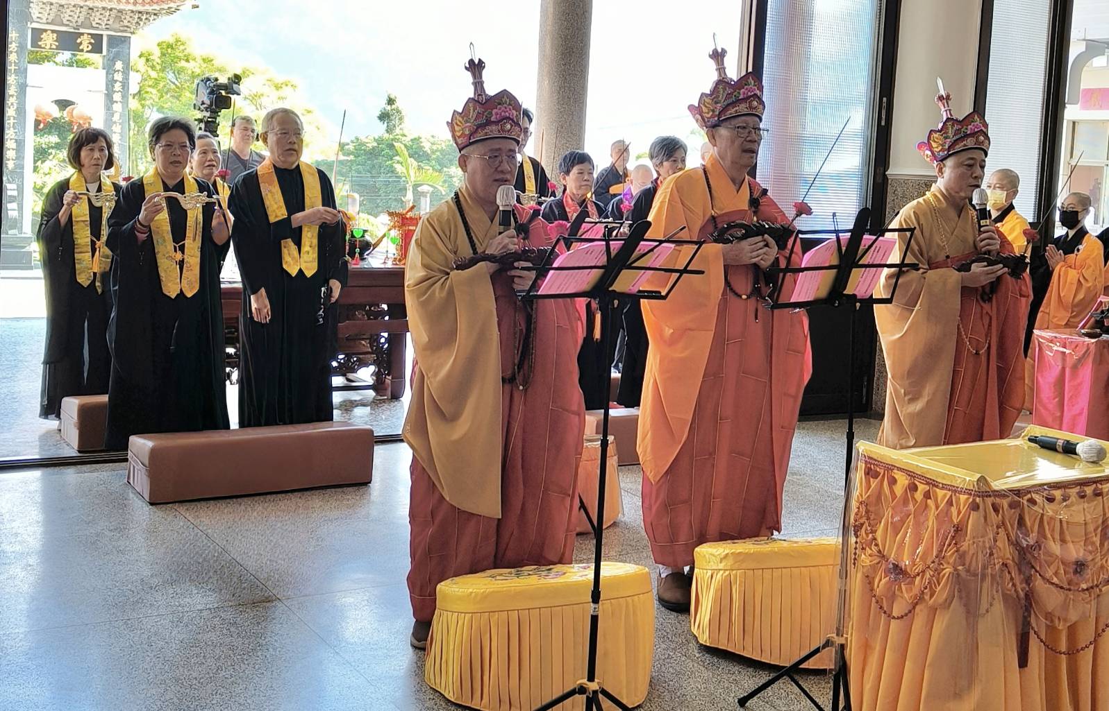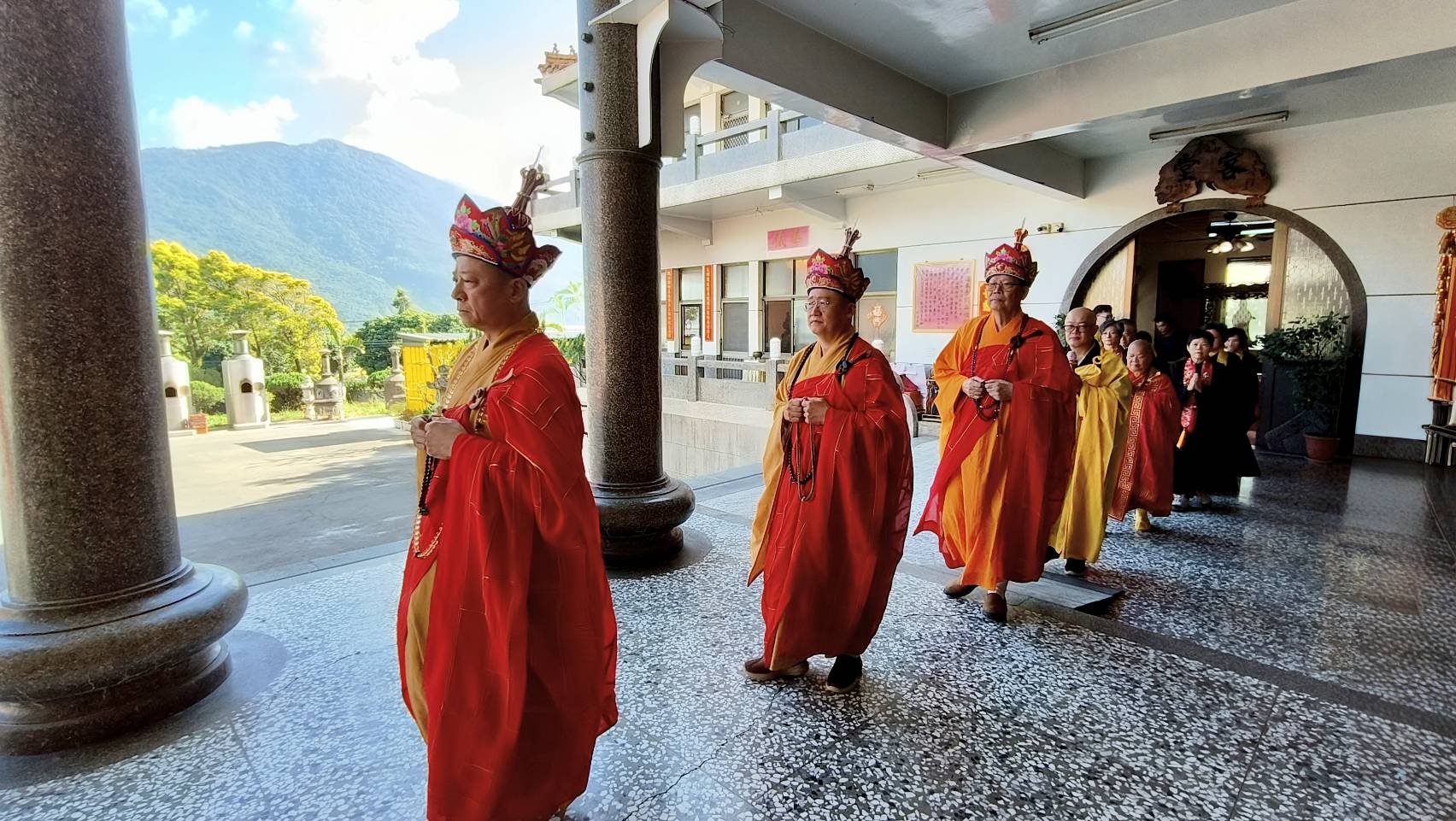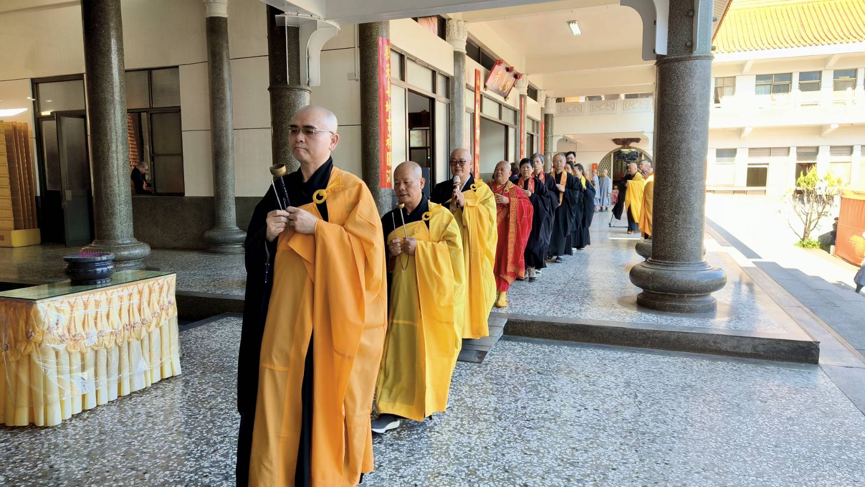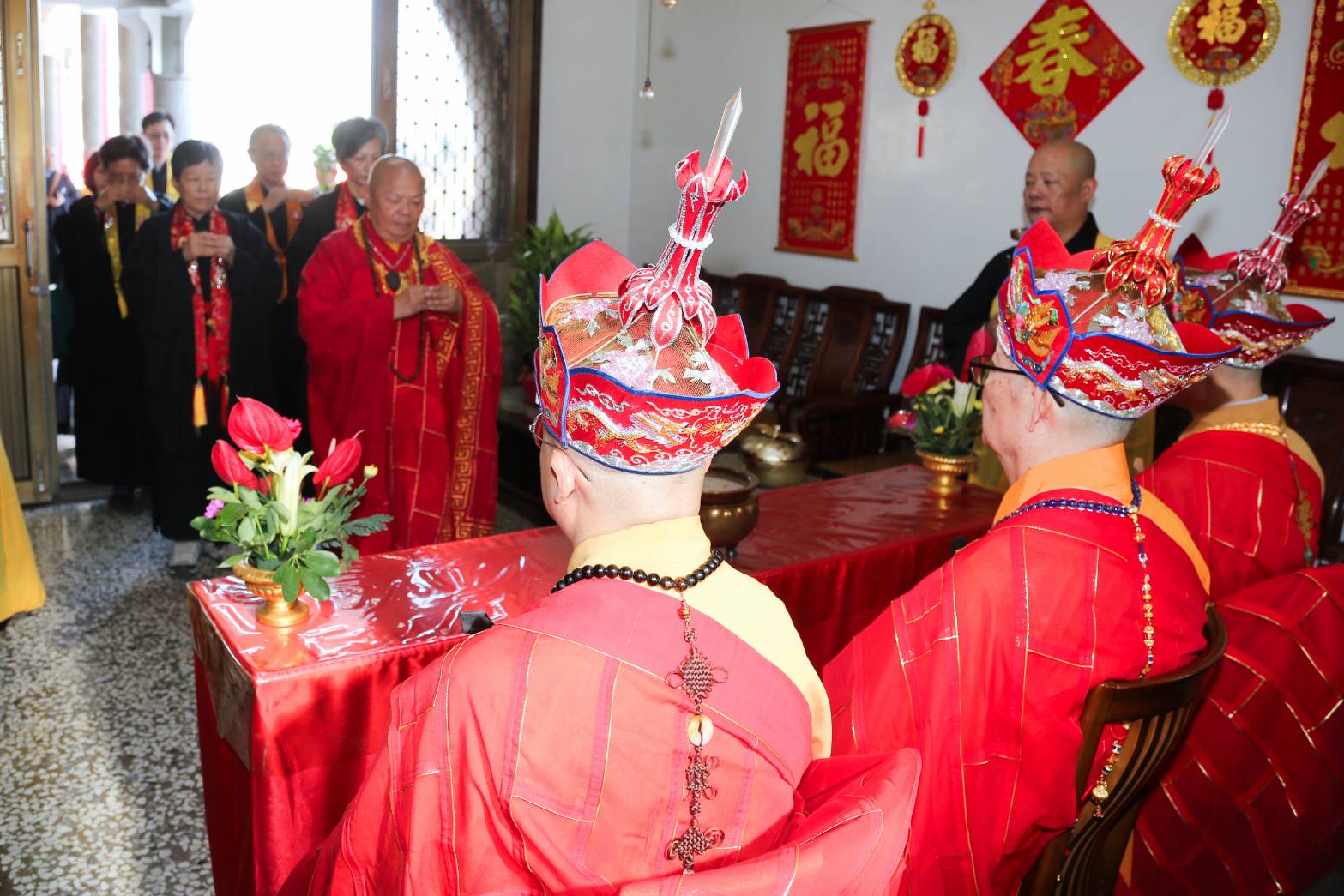 香燈引領齋主到法堂恭請主法和尚。