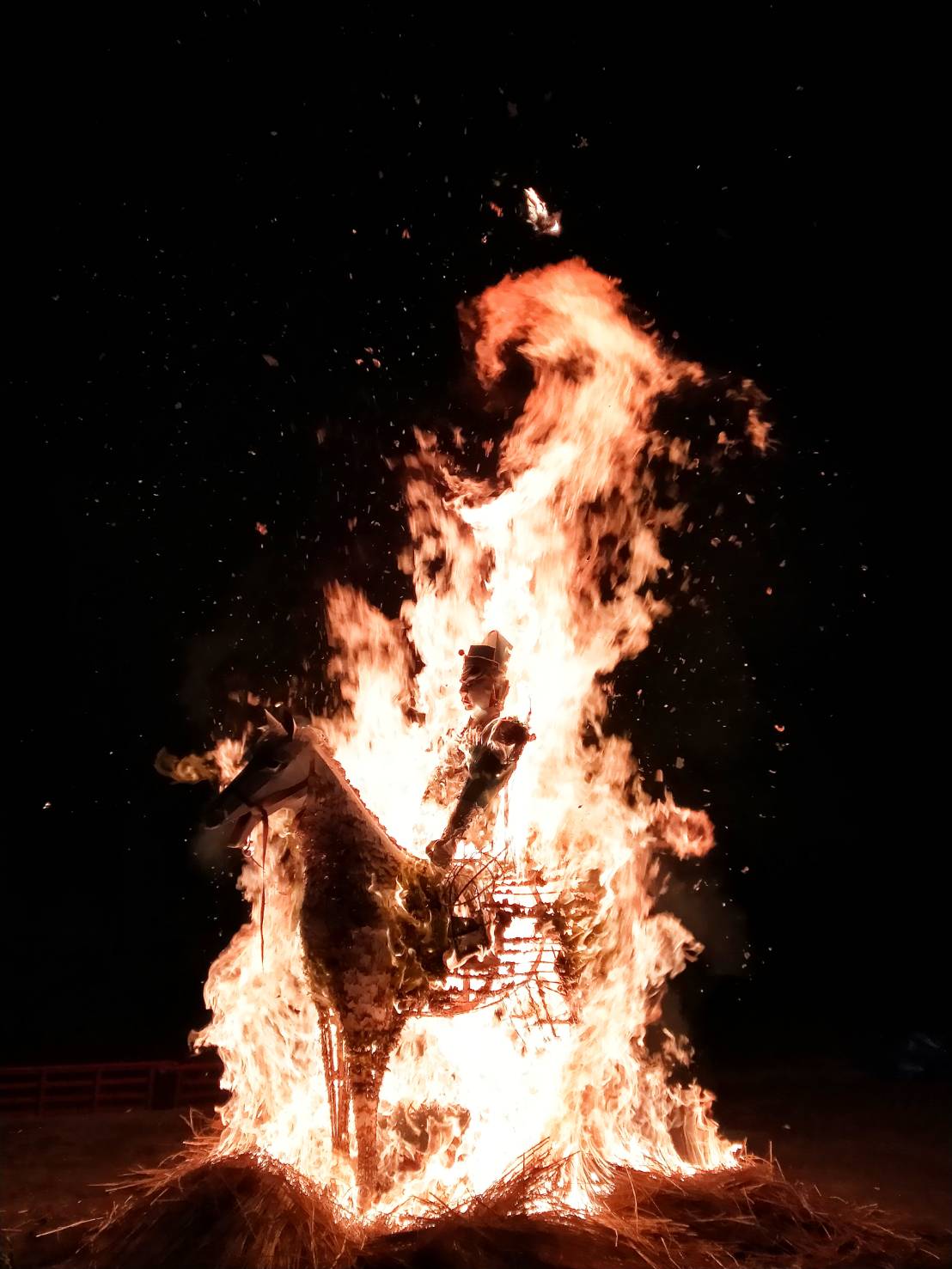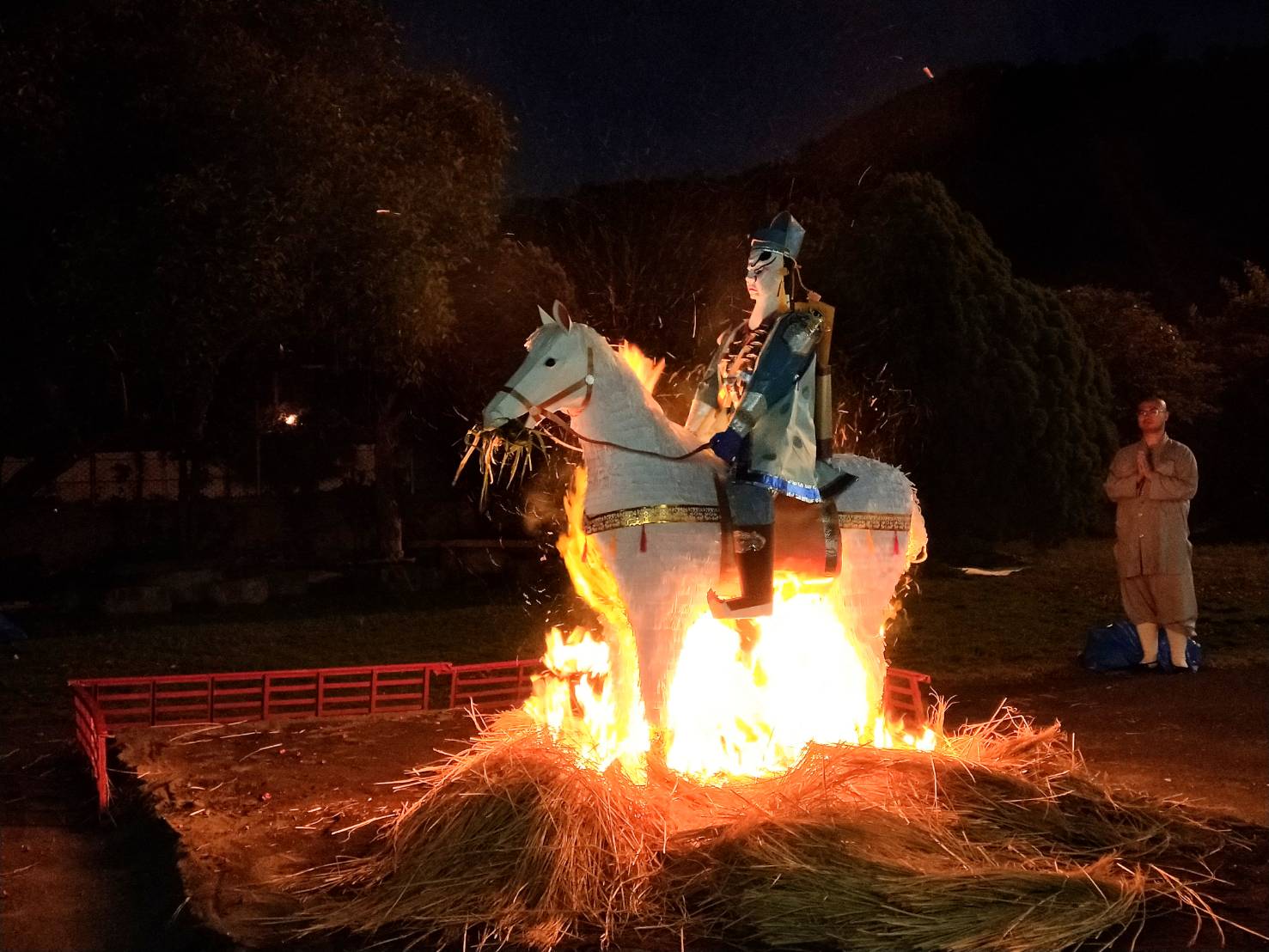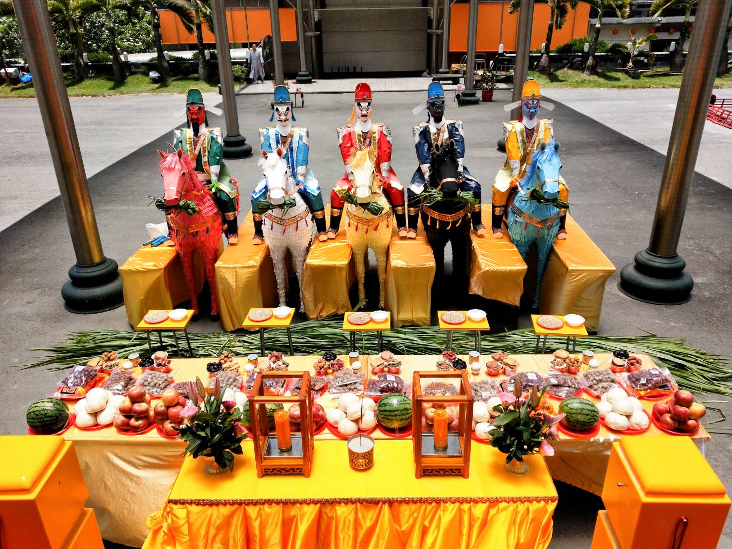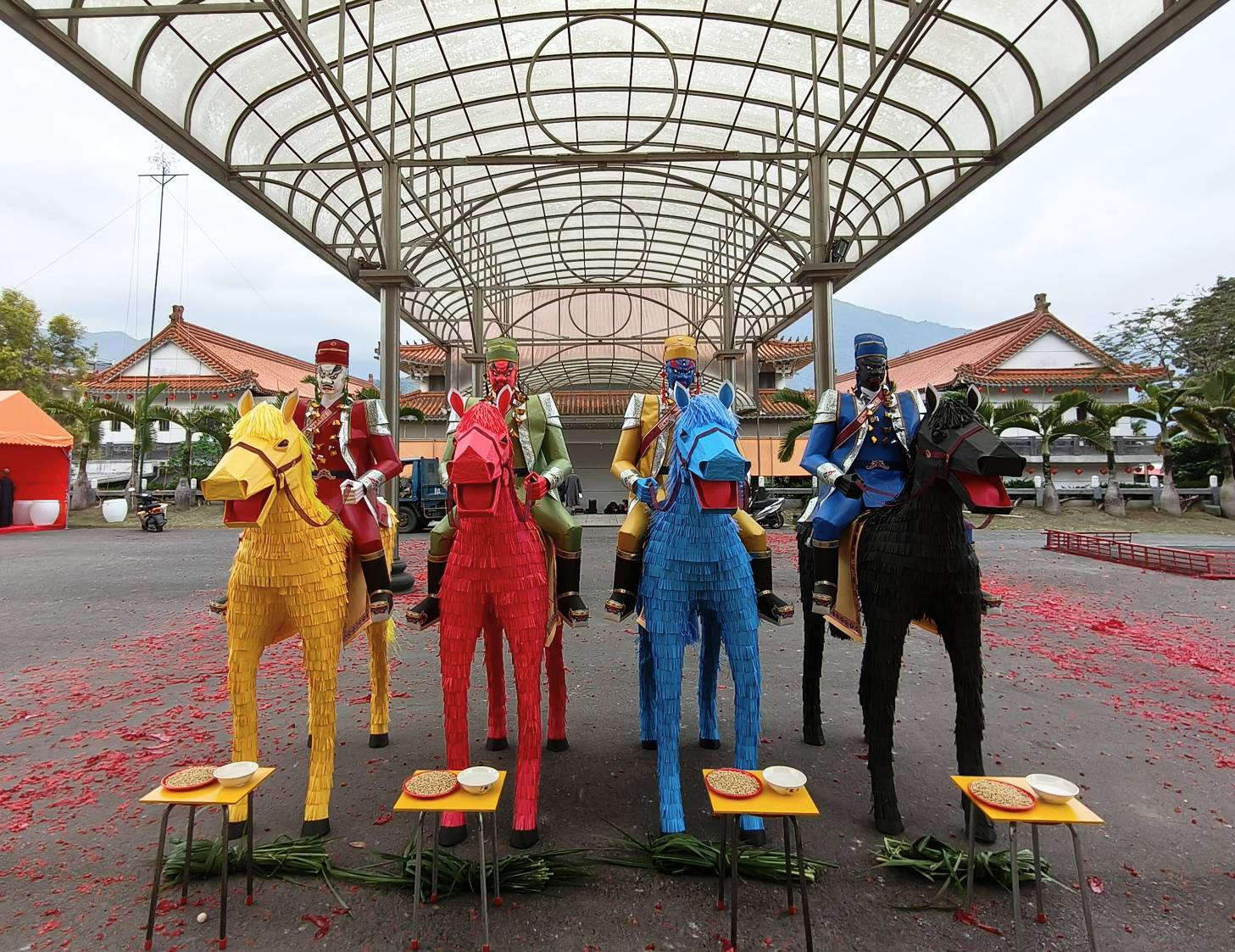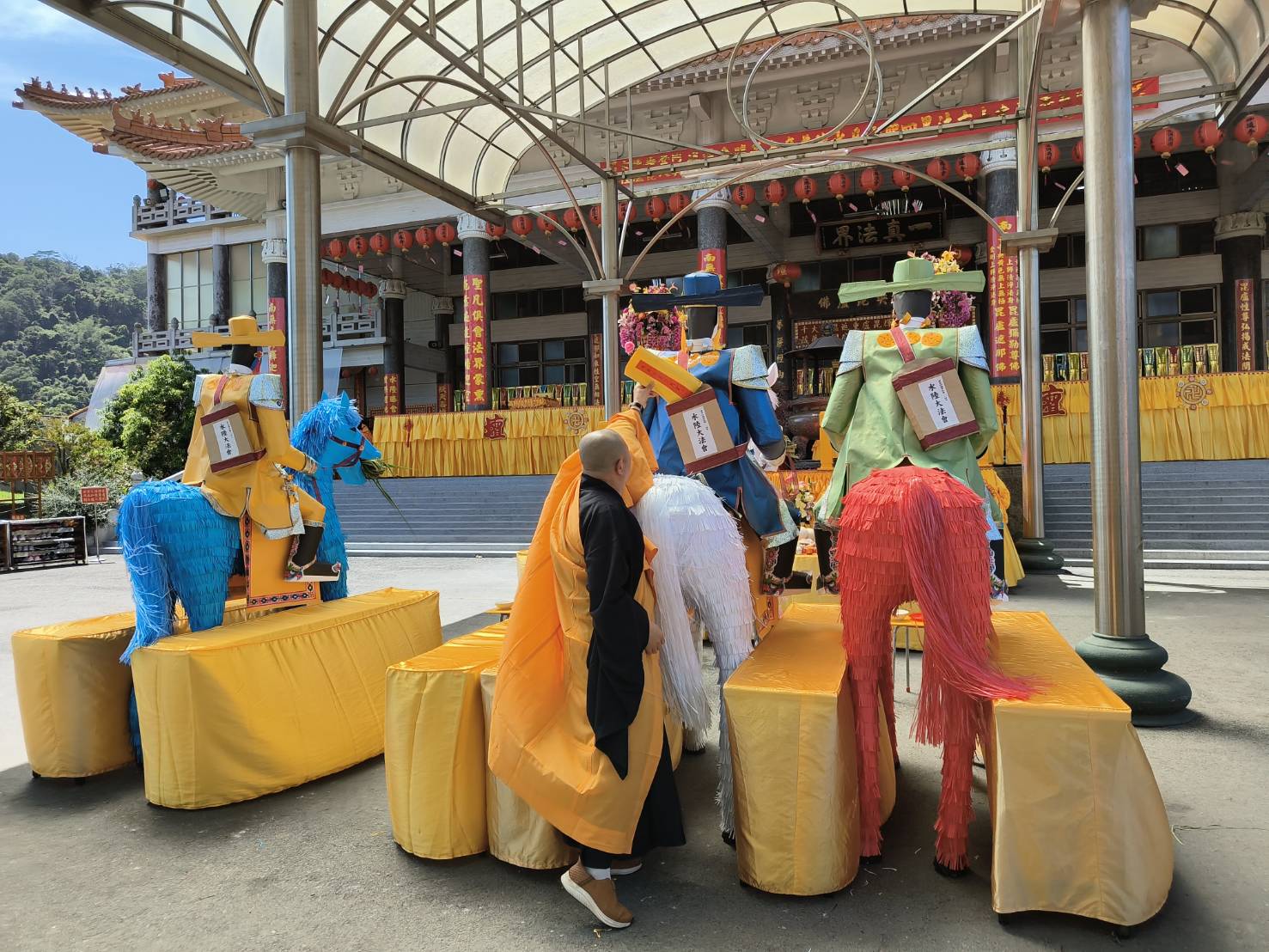 「送判宣疏」,圓滿香佛事進行中,五位判官騎駿馬,攜帶五張判官疏、判牒,直躍飛奔水陸空各界,宣告水陸法會功德圓滿。