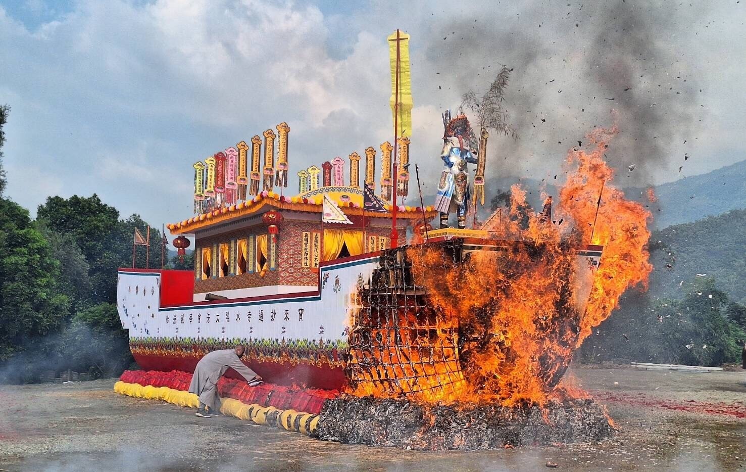 「送聖」,就是「奉送聖駕雲程,一心念佛引導」,祈請聖眾返回清淨法界,並將所有牌位都收放到西方船上,焚化西方船,亡靈都乘船往生西方極樂世界。歷代祖先眷屬,六道群靈,皆能隨念佛聲順利往生西方極樂世界,「聖眾請歸雲路,六道眾生往生淨土」。