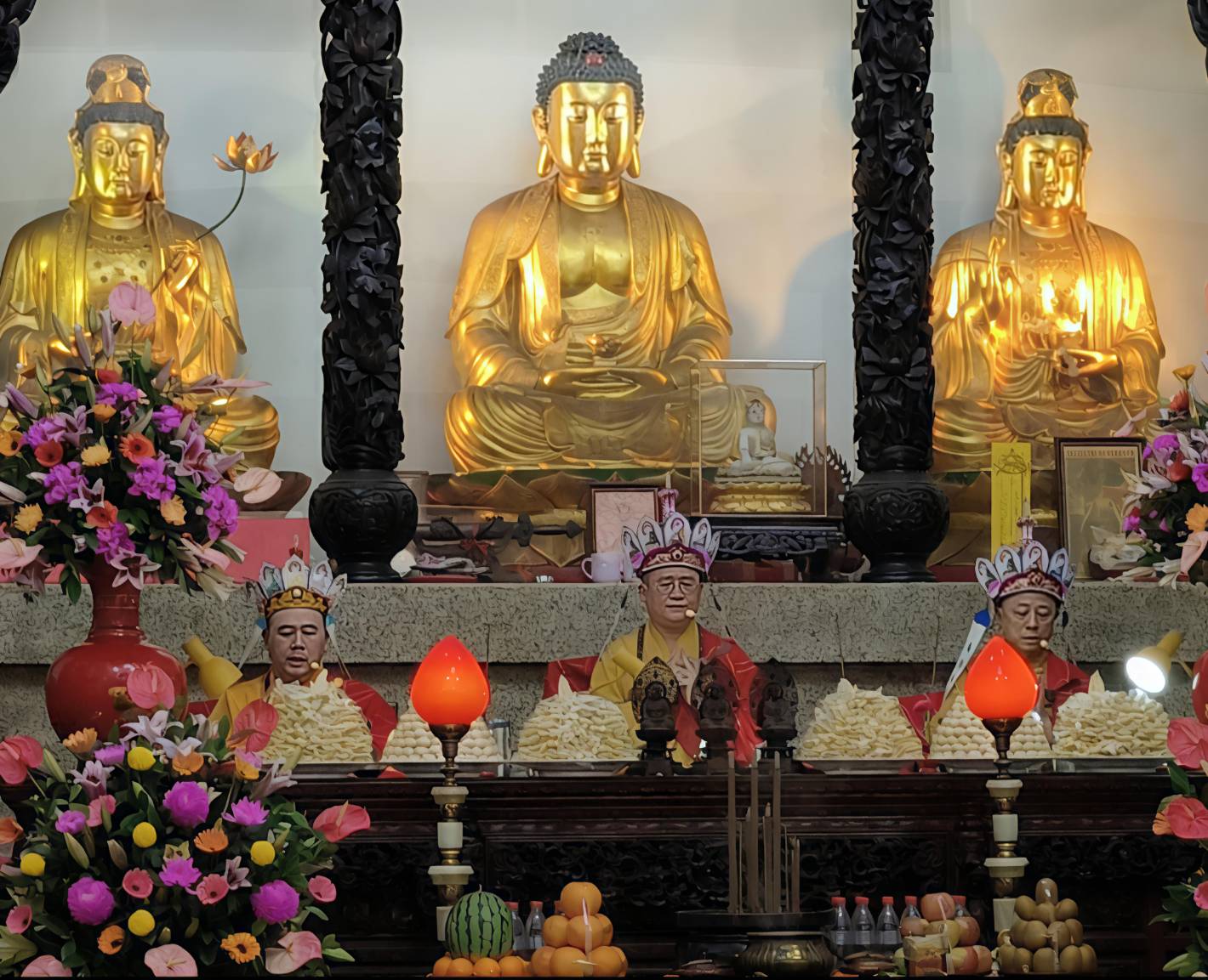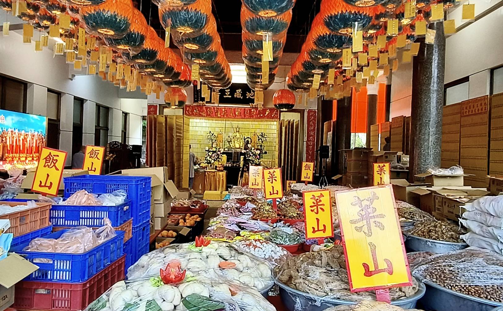 本寺農曆7月【地藏王菩薩誕辰萬緣消災普度法會】,整月虔誠禮懺誦經,更於農曆7月7日與7月29日各施放瑜伽焰口乙堂,設斛施食,將以水、食物、衣物、錫箔冥衣等布施地獄、餓鬼、畜生道眾生,及十方法界水陸寒林一切無祀男女孤魂等眾,先令飽足,繼以法施,令之聽聞佛法,懺悔三業,洗浣心垢,身心清淨,同參法會,聽聞佛法,皈依三寶,懺悔三業,讓ㄧ切有情於施食圓滿,仗此周隆功德,無限良因,離苦得樂,共證真常。