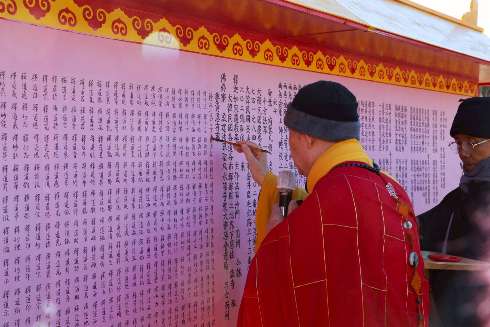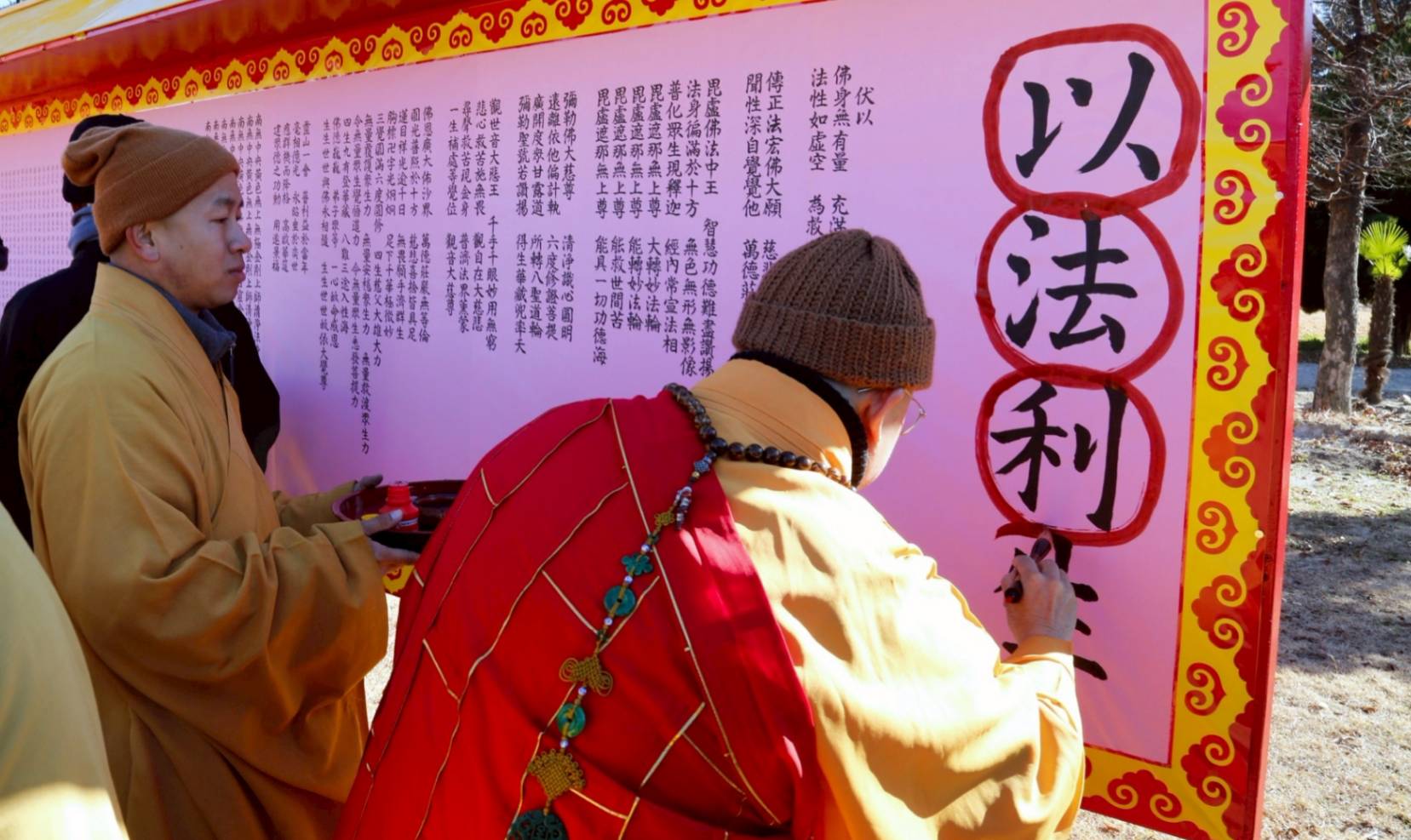 結界佛事圓滿恭送和尚回寮。