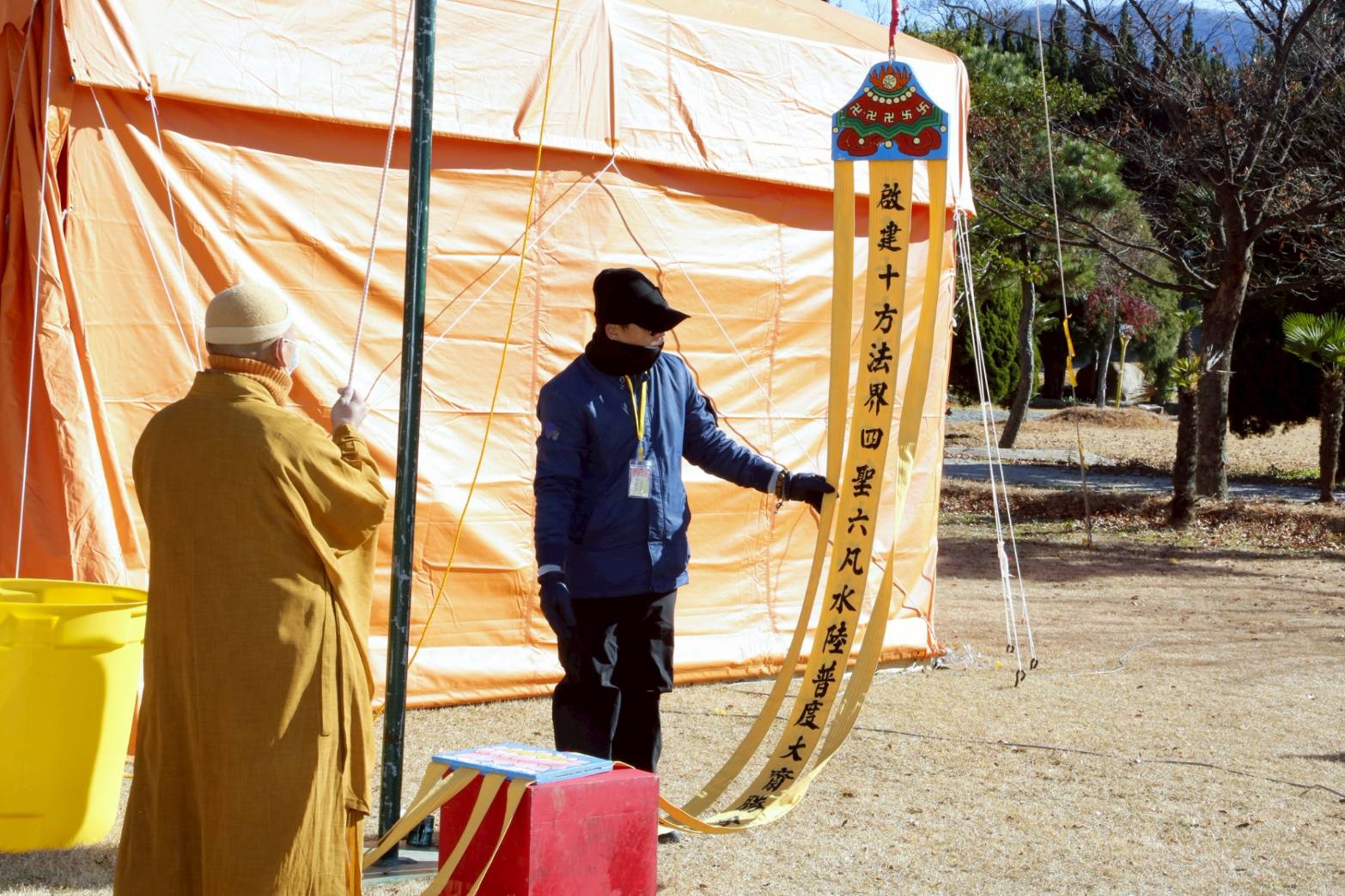 上來發符圓滿。茲當升揚寶幡。