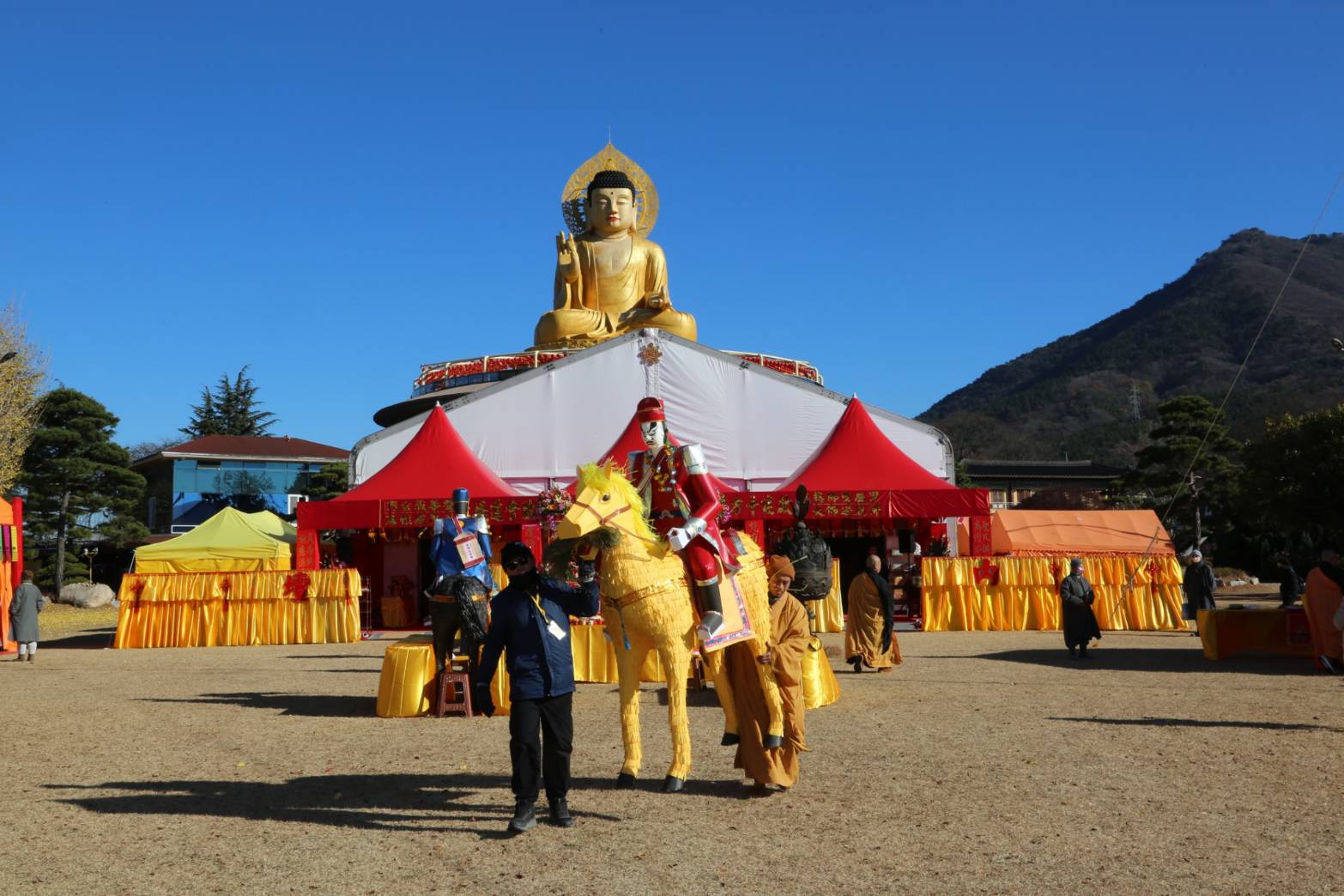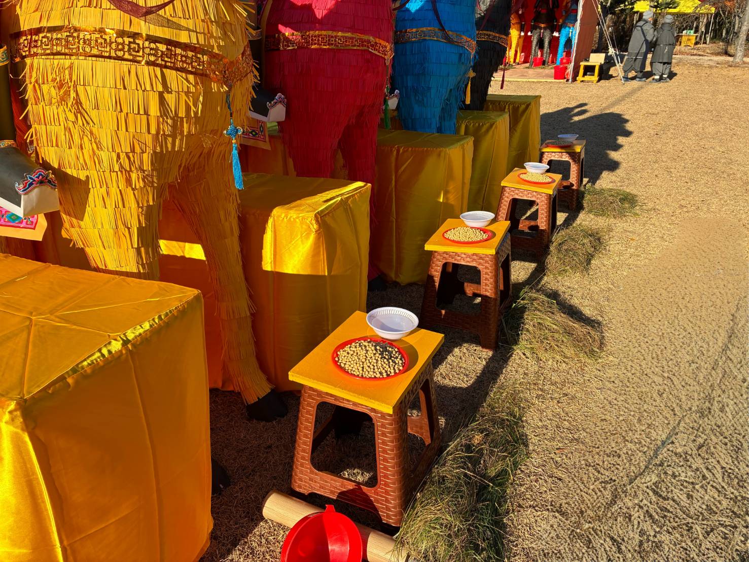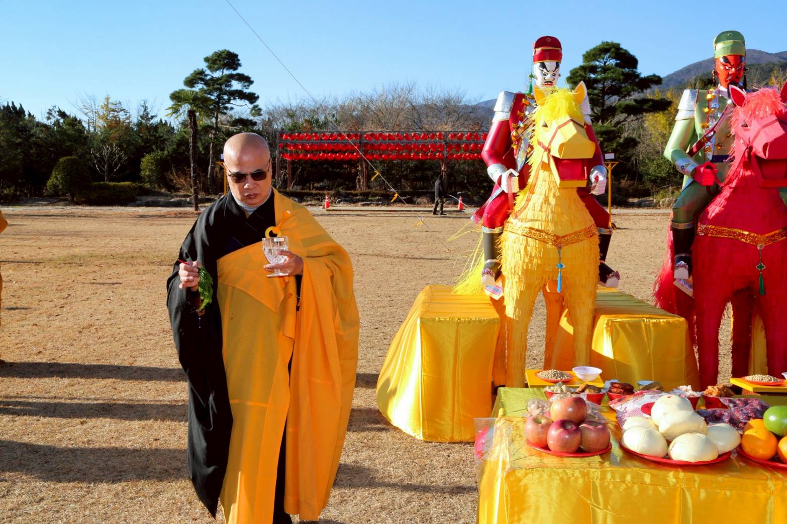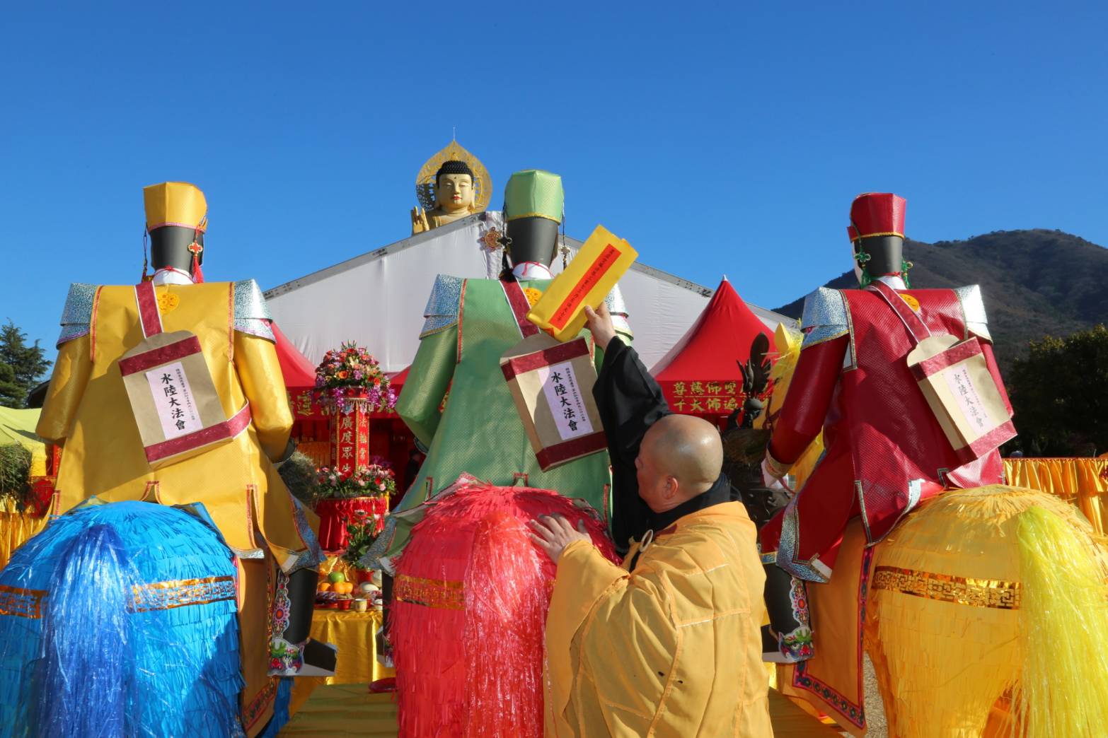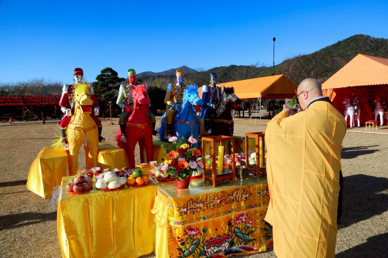 四尊持符使者與馬匹就位,準備供持符使者的供品、馬匹糧草及大悲水。