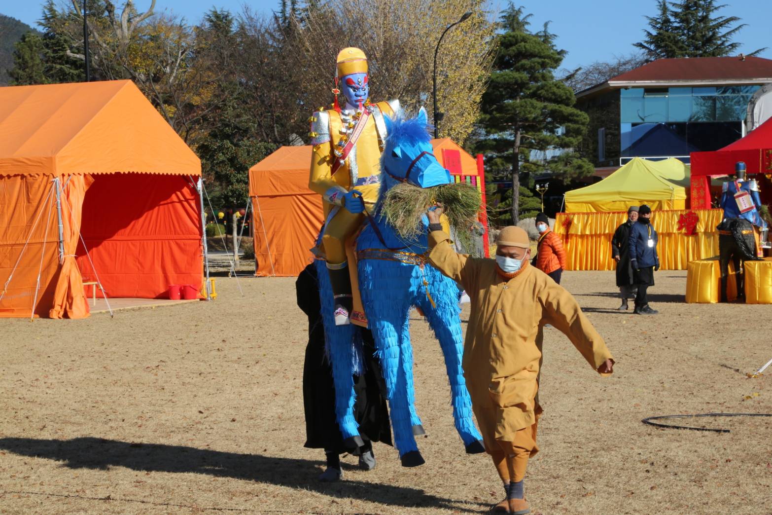 灑淨畢,工作人員餵馬吃黃豆之後口含一把牧草。