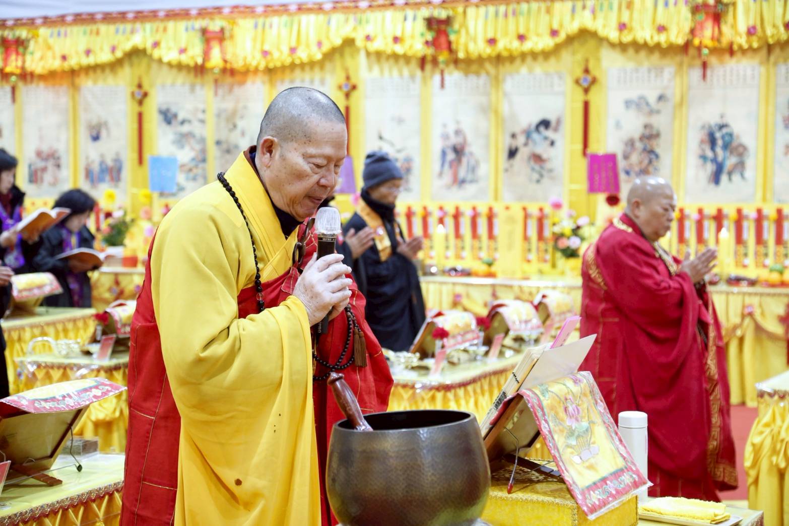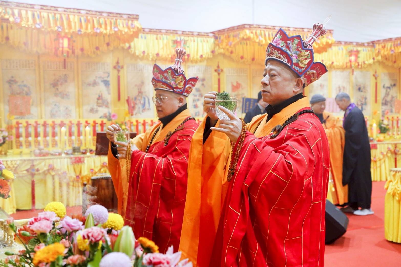 三位主法和尚依序在天香几香案拈香