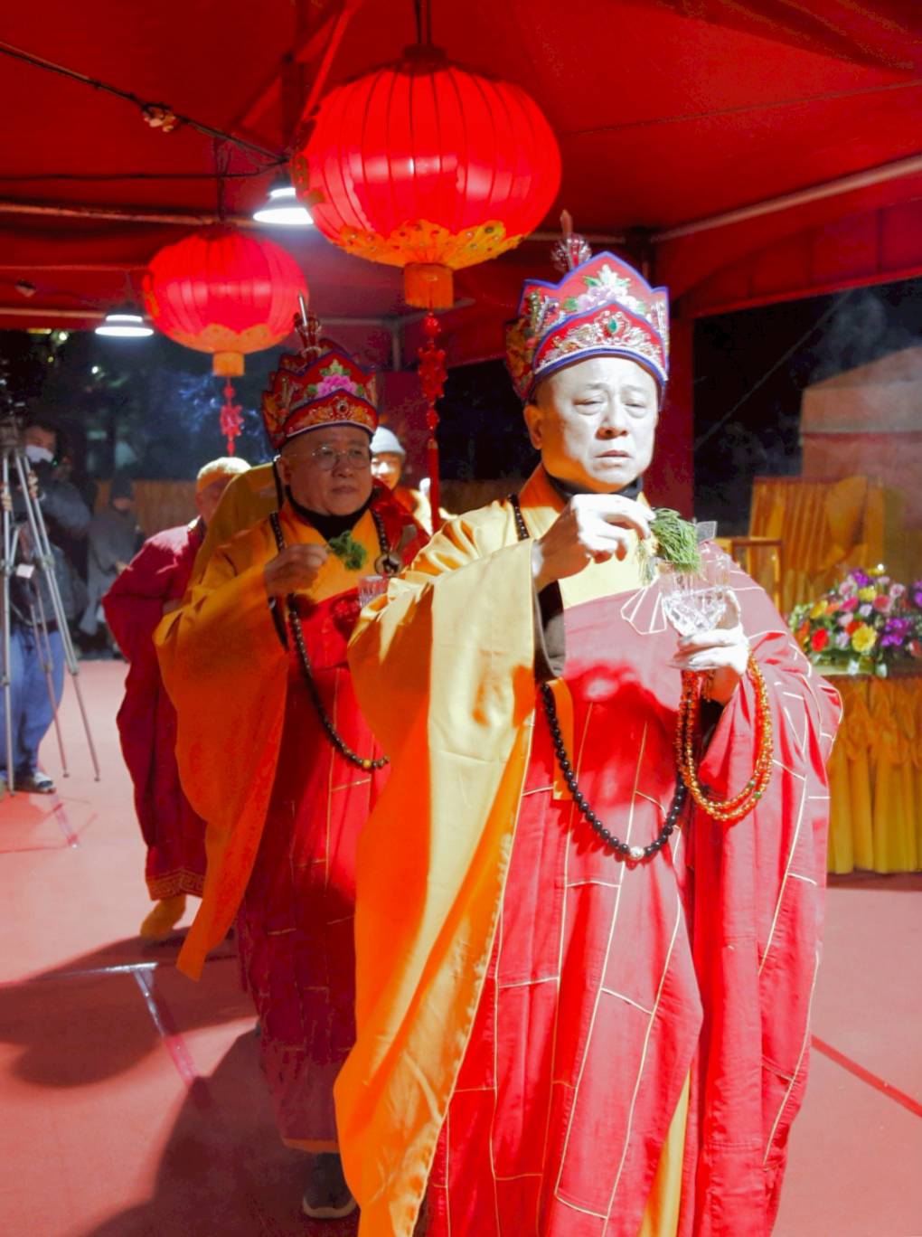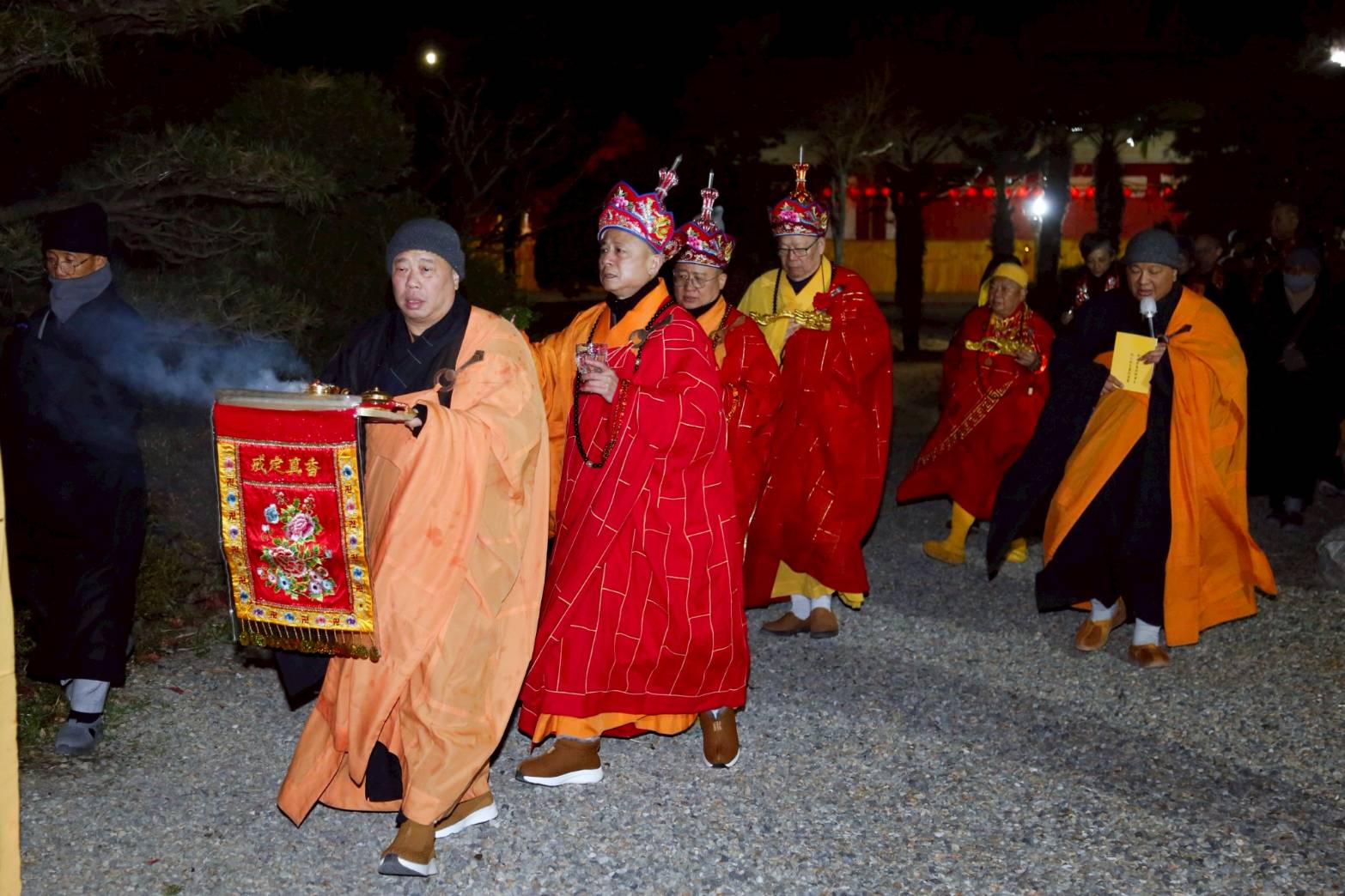 兩位出家眾提燈、兩位出家眾提爐,在前引導。