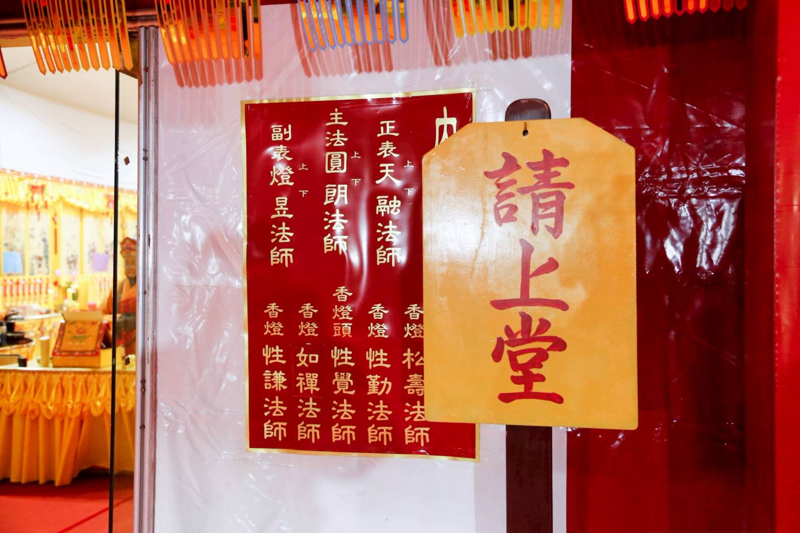 壇前門上掛請聖幡10首,幡上書10席總名,需依儀文位次,切勿錯亂。