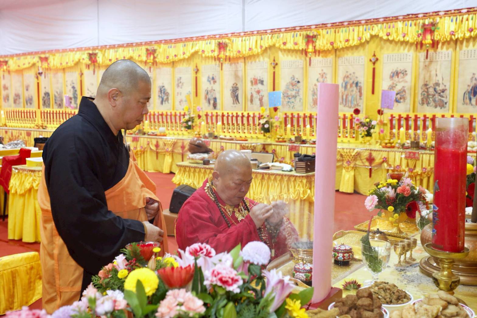 主法和尚拈香散花後設拜